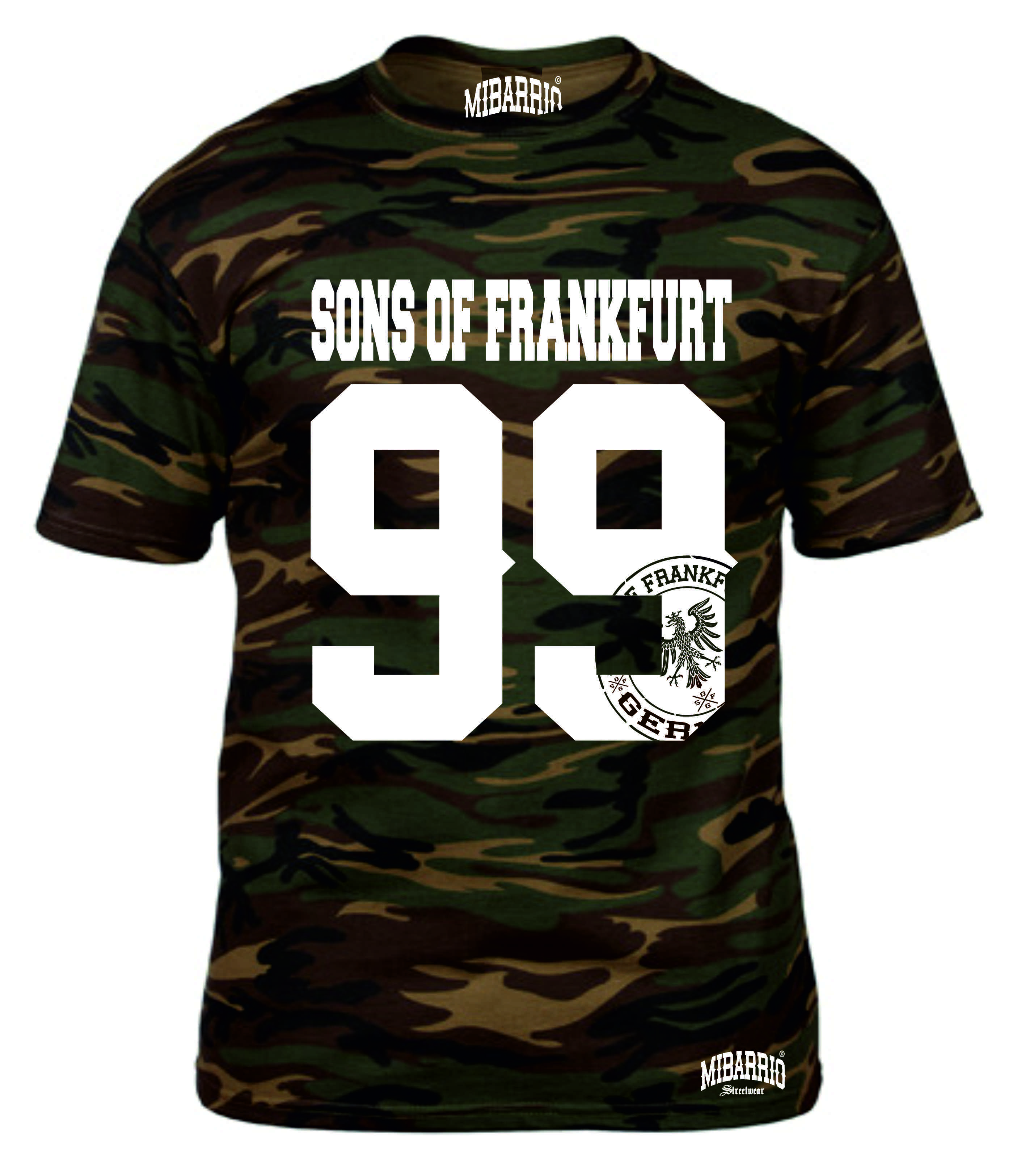 SONS OF FRANKFURT IM ANGESAGTEM CAMOUFLAGE LOOK FRONTPRINT SONS OF FRANKFURT 99 BACKPRINT SONS OF FRANKFURT 99